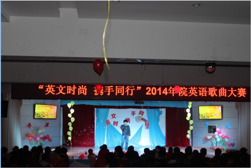 为了丰富同学们的课余生活,激发学生对英语学习的兴趣,调动学生学习英语的主动性,由基础部外语教研室主办,追逐英语社协办的英文歌曲大赛于12月30日晚7:00在17#201隆重举行。本次比赛得到了全院学生的积极参与,经过前一轮的预赛选拔,共有15名选手进入本次决赛。整场比赛井然有序,选手水平卓越,同台比赛角逐,竞争力相当激烈, 赢得了评委和观众的赞赏与好评,最终奖项实至名归,为全校师生奉献了一场激情洋溢的视觉和听觉盛宴。此次大赛为同学们提供了一个展示自我风采的平台,积极地调动了同学们对英文学习的兴趣,受到了全校师生的好评。