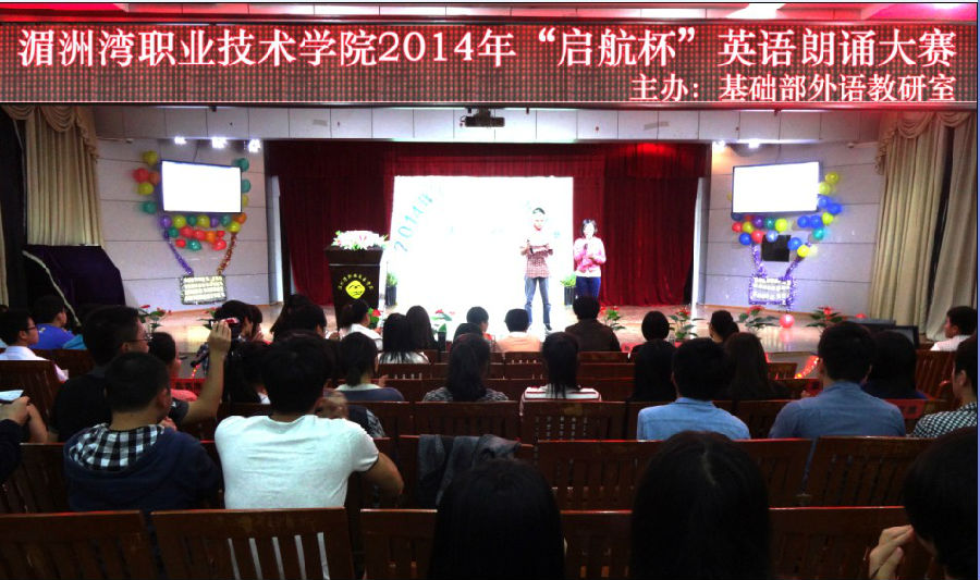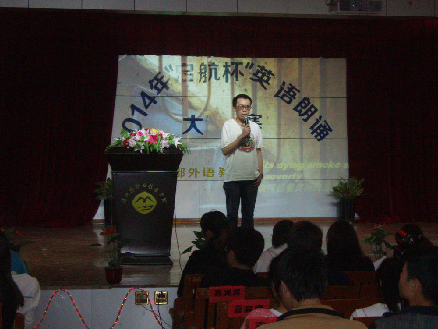 为丰富学生的校园文化生活,提高学生学习英语的兴趣和水平,营造学校的英语氛围,基础部于2014年5月6日晚7:00在17#201举办了“启航杯”英语朗诵大赛。经过前一轮的预赛选拔,共有来自学院各个院系的16名选手进入本次决赛。经过激烈的角逐,最终评出一等奖2名,二等奖3名,三等奖4名,优秀奖7名。