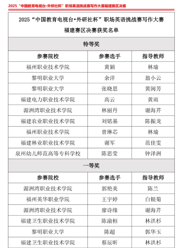 2025“中国教育电视台·外研社杯”职场英语挑战赛写作大赛 喜获省级特等奖1项,一等奖2