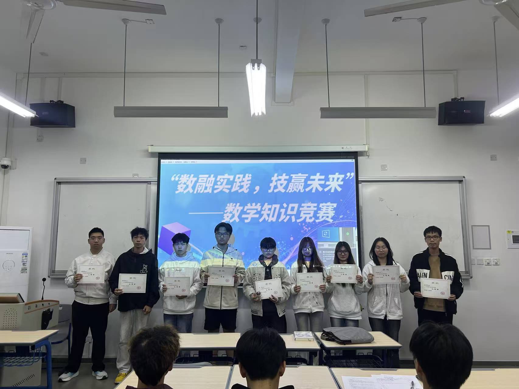 经过激烈角逐,评委组综合考虑答题准确率,最终评选出一等奖1名、二等奖3名、三等奖5名。评委老师为获奖选手现场颁发荣誉证书,鼓励他们以此次竞赛为契机,持续深耕数学领域,在实践中锤炼本领。