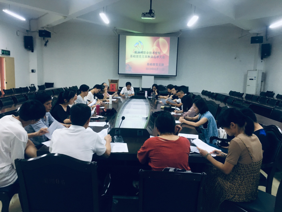 2019年6月11日下午3:00,湄洲湾职业技术学院基础部党支部在图书馆二楼会议室召开换届选举大会。会议由基础部上一届党支部书记陈国平主持,基础部党支部全体党员参加大会。