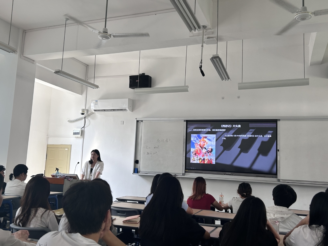 此次活动中,艺术组新教师陈芷妍课上以经典影视剧《西游记》片头曲入手,迅速地将学生带入到情境学习中,引导学生分析了音乐的创作背景及其对电影情节的情感表达。数学组新教师戴清霞公开讲授课程《高等数学》第一章第二节:极限的四则运算法则。